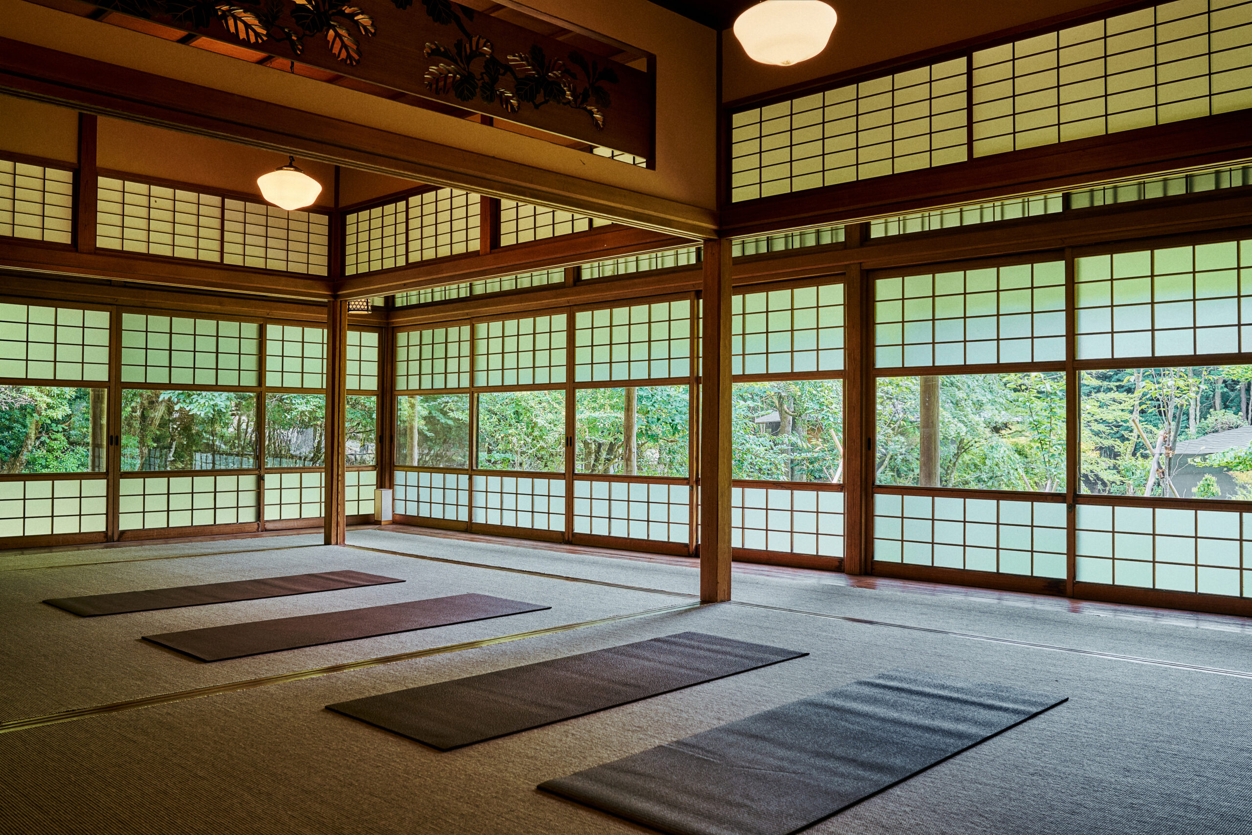 歴史ある「俵石閣」の数寄屋造りの日本家屋で、ご自身のペースで行う静かなヨガ体験。用意されたヨガマットを好きな場所に敷き、木の香り漂う空間と涼やかな朝や夕の空気に身を委ねながら、深い呼吸で心身を整えるひととき。自然とのつながりを感じ、自分を見つめ直す穏やかな時間…